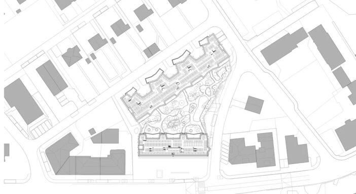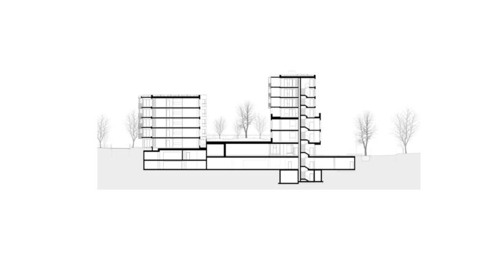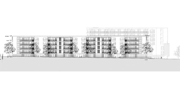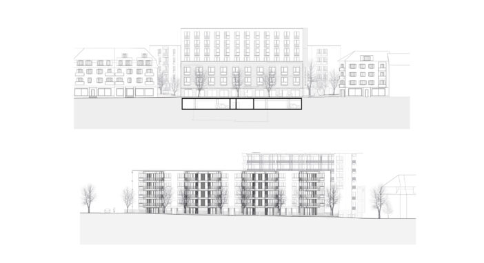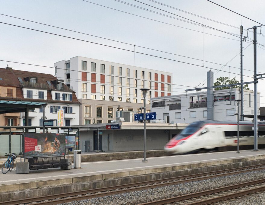 Wohn- und Gewerbeüberbauung Bahnhofplatz, Effretikon. Neubauten in Massivbauweise (2 Gebäudeflügel mit einem verbindenden Sockelbau).
