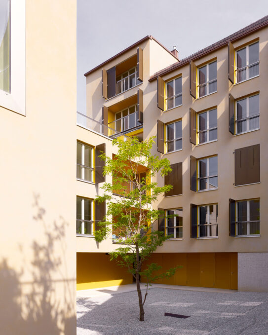 «Über vielfältige Sichtbezüge aus dem Inneren und von den Balkonen, Loggien und Dachterrassen weben die Architekten die Wohnungen in die Altstadt ein mit ihren schiefen Häusern und Türmchen, den Zinnen und Giebeln, den dichten und lichten Flächen.» Palle Petersen, zit. aus: «Aufrechter Lückenbüsser», in: Hochparterre, Nr. 11, 2011, S. 41