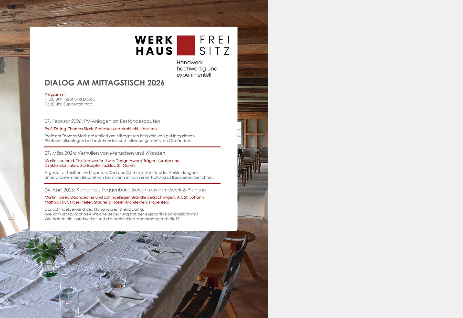 Dialog am Mittagstisch. Werkhaus Freisitz in Tägerschen, Dialog4. April 2026