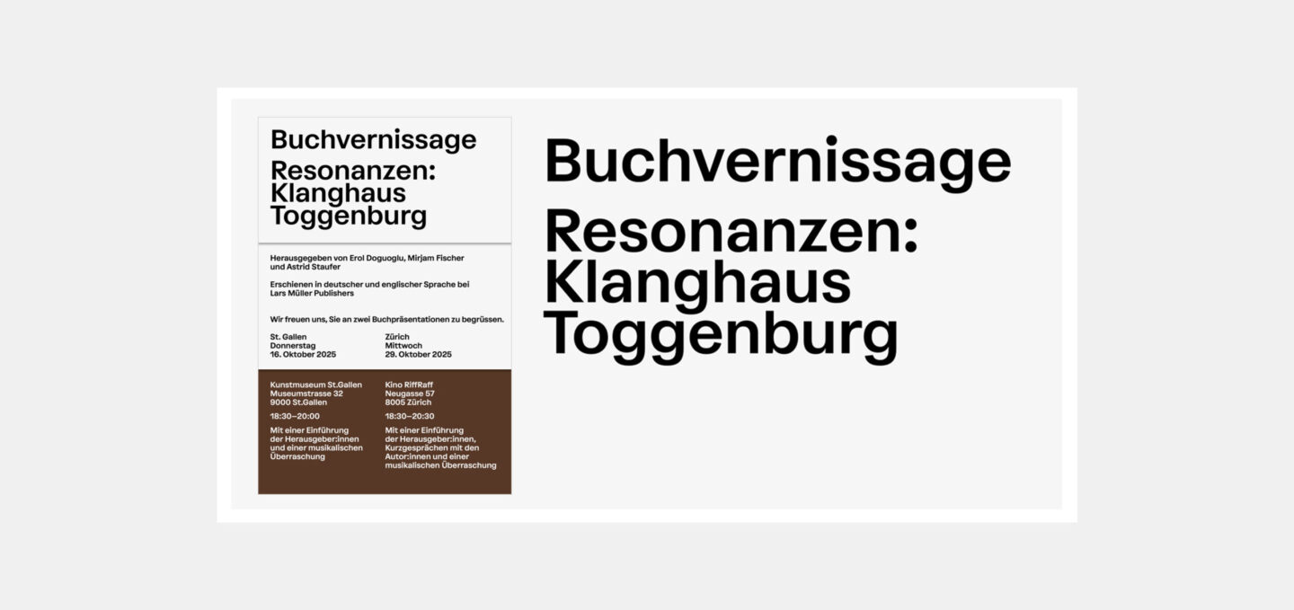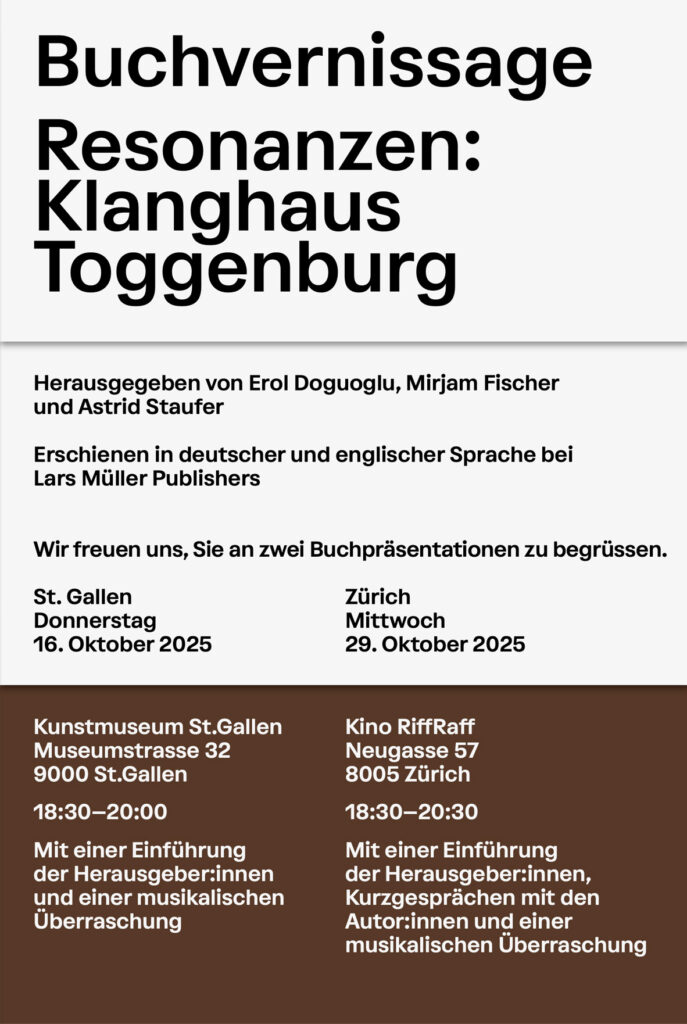 ‹Buchvernissage Resonanzen: Klanghaus Toggenburg›, Kunstmuseum St.Gallen und Kino RiffRaff Zürich